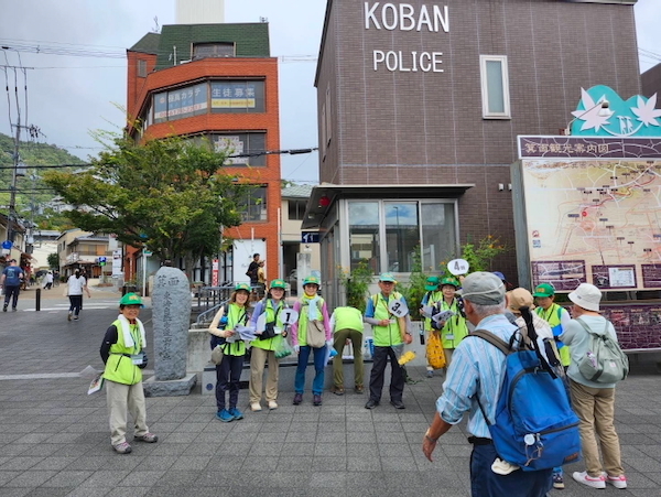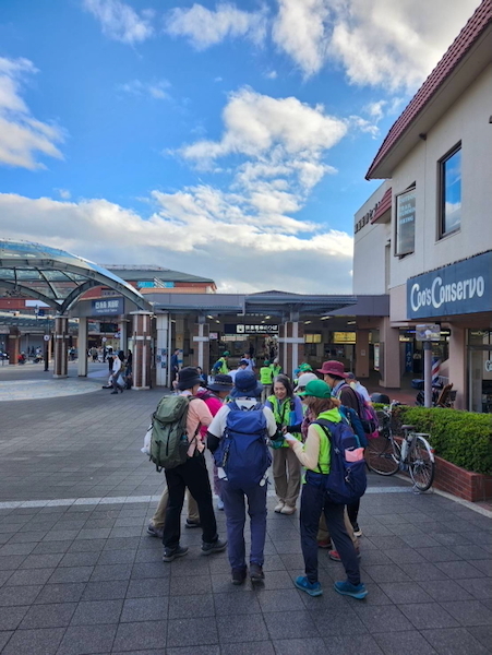 箕面駅前広場。集合時間の9時40分には参加者の方が次々にが到着されました。