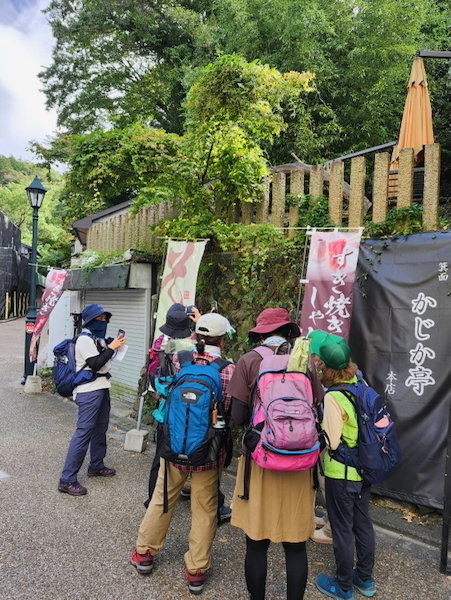 ガイドが指差しているのはカラムシやヒメコウゾ。昔から繊維や食料として、また和紙の原料などに利用されてきました。