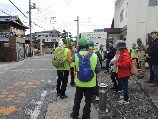 駅前スタート~石橋(能勢街道・西国街道交差点)~今井橋・瀬川と豊島河原の戦い~瀬川・半町本陣跡~牛回しの石塔「大威徳明王」笠塔婆〜牧落八幡大神宮(休憩・横の公園WC)~牧之荘の郷倉と力試しの力石〜牧落高札場と道標~西脇公園(昼食・WC)~教学寺と三島海雲~芝村の高札場跡〜萱野三平旧邸・長屋門(涓泉亭)~箕面山の道標・西宿・今宮の庚申塔(青面金剛)~柳谷観音の石塔〜勝尾寺旧表参道の大鳥居・36町石・霊場二階堂道の道標~粟生新家民家の軒先の桶・小野原地区西の常夜灯籠〜楠水龍王・春日神社御旅所/須賀神社~小野原東公園(WC)〜小野原地区東常夜灯籠・左京ふしみ道の道標〜豊川学校・勝尾寺への道標・豊川の春日神社〜宿川原西会場前の道標~郡山本陣(椿本陣)解散